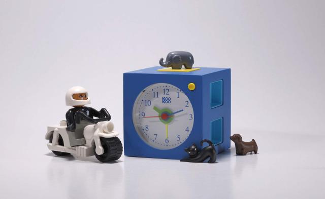 この鮮やかにペイントされた子供用目覚まし時計は磁石付き動物を選んで、時計上部にセットし、該当動物の声を選ぶことで動き始めます。