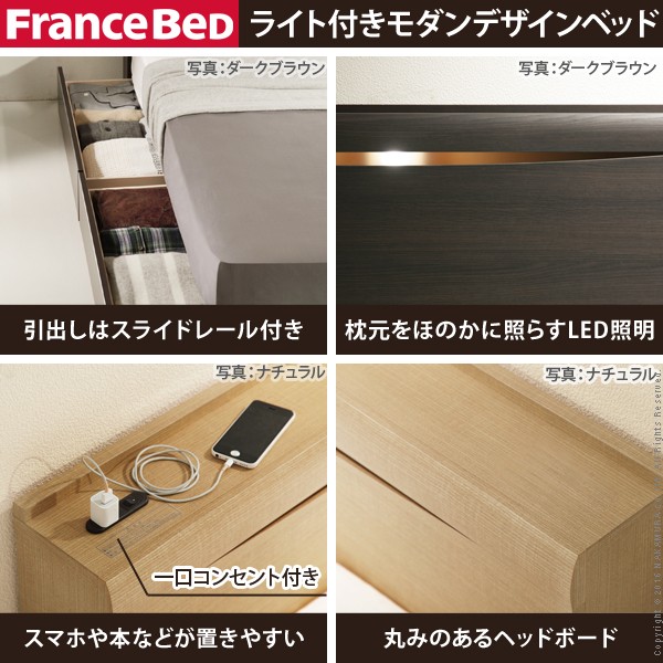宅配ポイント10倍・送料無料 フランスベッド ライト・棚付きベッド 〔グラディス〕 引出しタイプ シングル ベッドフレームのみ 収納ベッド 引き出し付き 収納 木製 日本製 宮付き コンセント ベッドライト フレーム +不織布マスク 5枚入 引越し 新生活 バレンタインデーの通販は海外通販なら